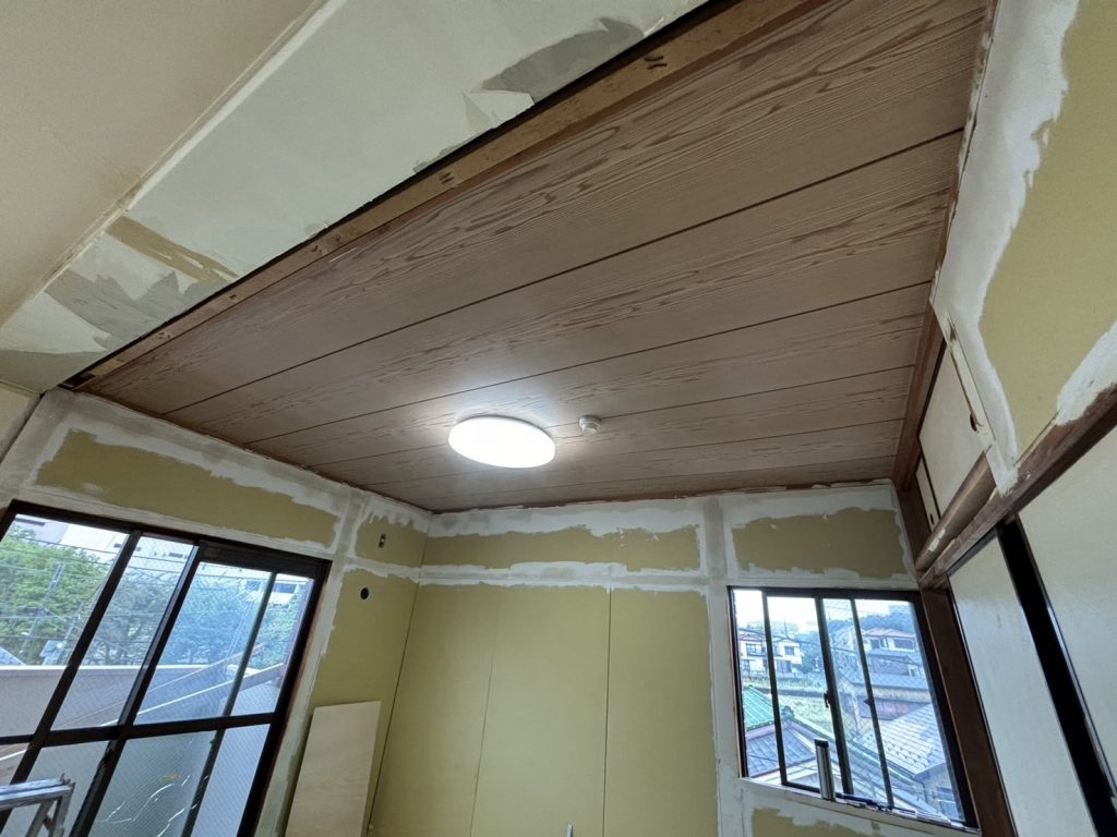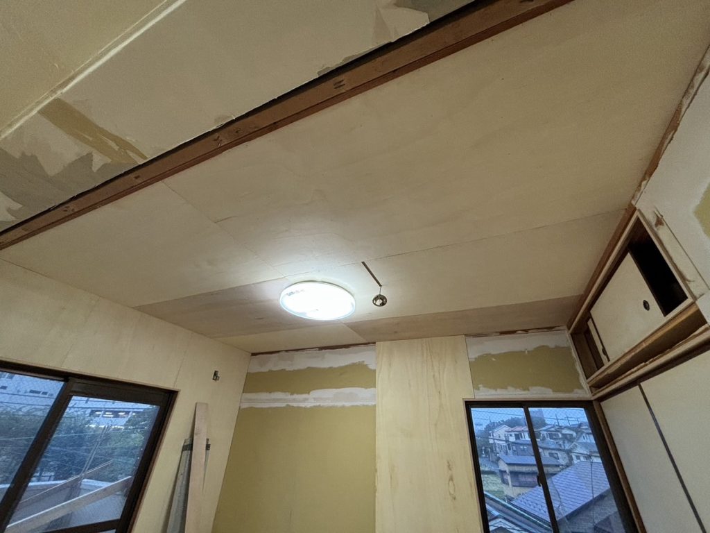 和室の目透かし天井にベニヤ板を増し貼りし、