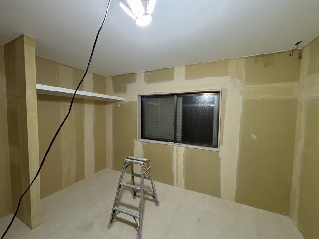 人気石膏ボードに下地パテをかけた後、