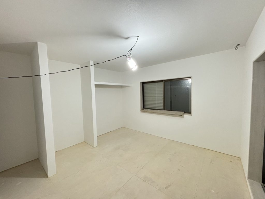 仕上げパテをかけ、その壁に壁紙を貼りました。
